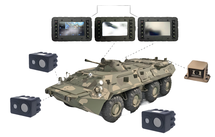 OPTROSET LTD provides Video cameras to assist the drivers of armored and other vehicles. A DVE system (Driver’s Video Enhancement) may include front camera, back camera, other cameras for situational awareness, video display(s) and interconnection cables. Thermal sensor is mandatory and additional Visual sensor is an option.